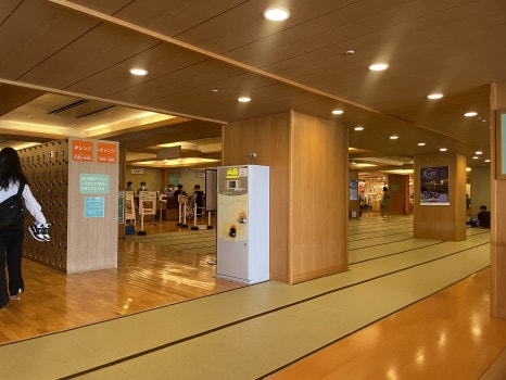 이렇게 유카타까지 다 입으셨다면 입고온 옷을 들고 다시 처음 탈의실로 가서 옷을 넣고 들어온 그대로 나가셔서 3층으로 가시면 식당이 있습니다. 우리가 열쇠를 받았던 곳 오른편으로 기념품이나 특산품 사는곳이 있고, 안쪽으로 게임랜드가 있어요. 손목의 키로 화폐구입이 가능하니 즐겨보세요. 다 즐겼다면 나오면 정면에 식당 입구가 있습니다. 거기입구에 맥주도 팔고, 안쪽으로 들어가면 식사를 할 수 있는 공간이 있으니 거기서 맛있는걸 드시면 됩니다. 쭉 돌아다녀보세요. 맛있는거 많습니다.