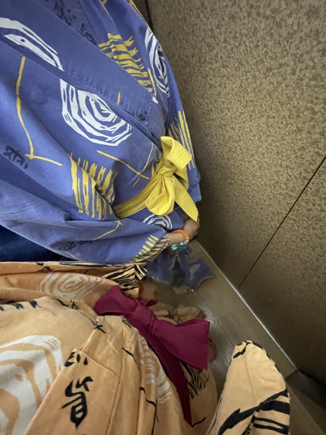 이렇게 온천을 마음껏즐기고, 이제 다시 탈의실로 돌아옵니다. 탈의실에 보면 큰수건이 있습니다. 그 큰수건으로 몸을 닦아주시고, 속옷을 입으시고 유카타를 입으시면됩니다.